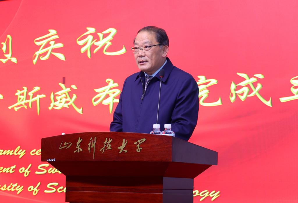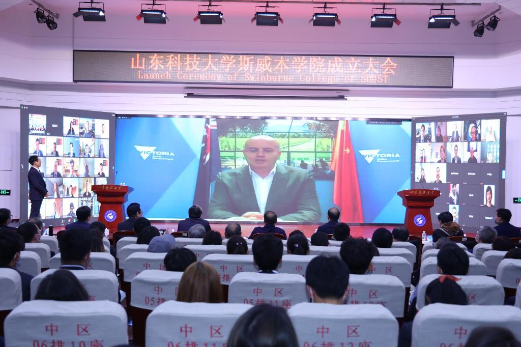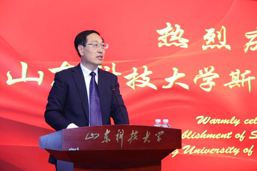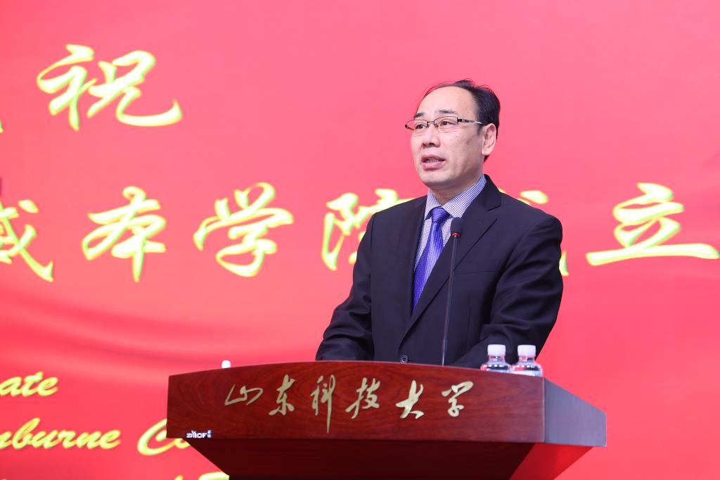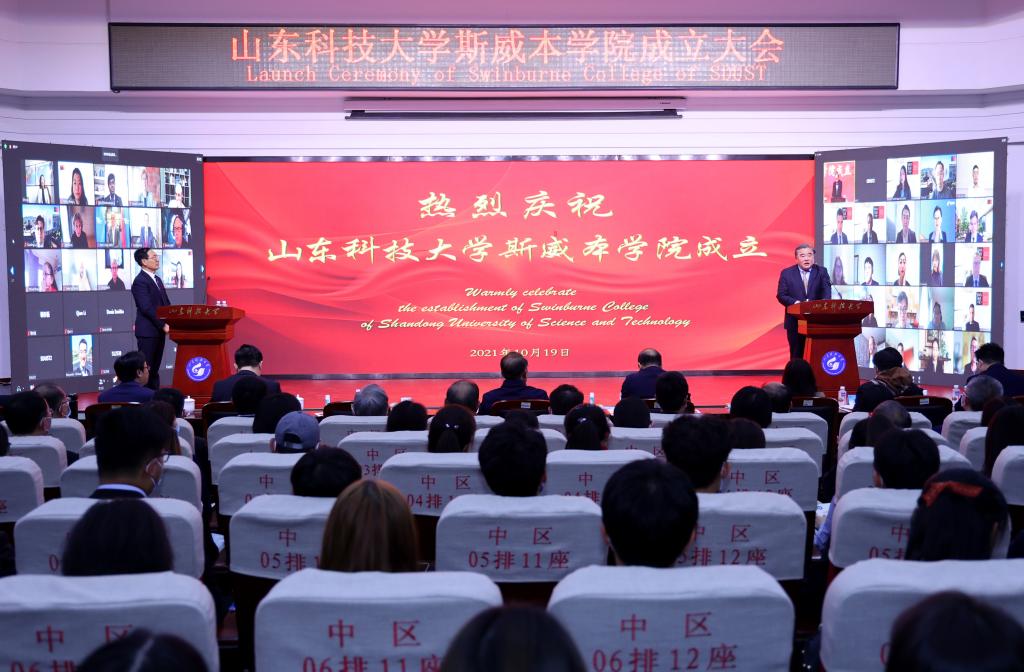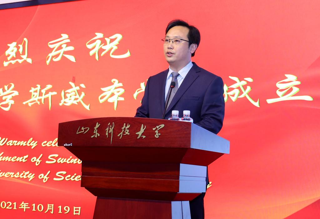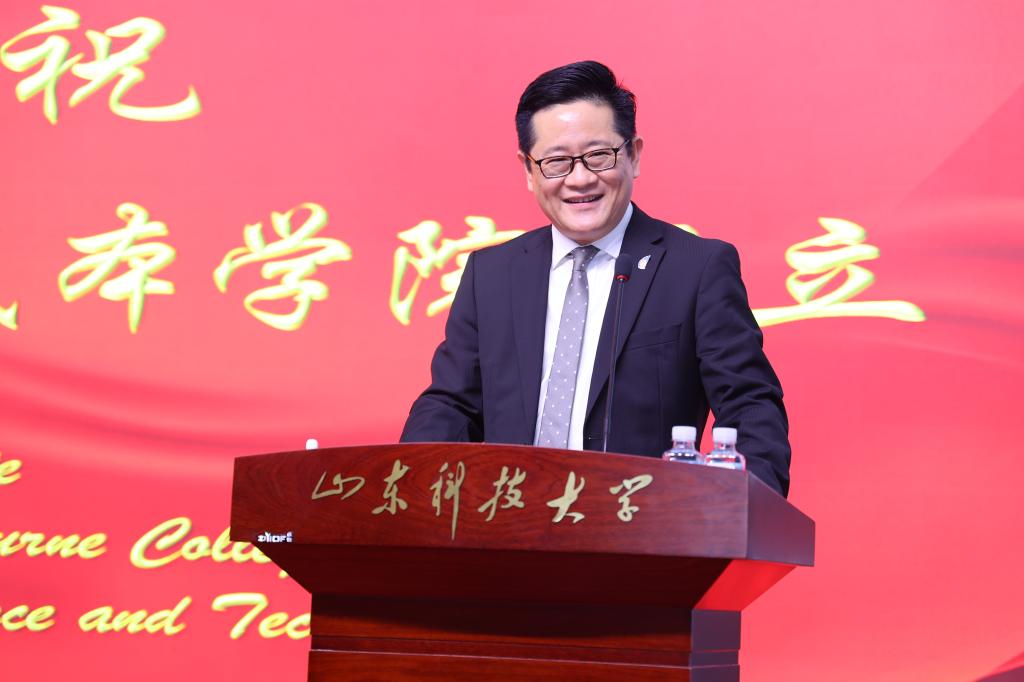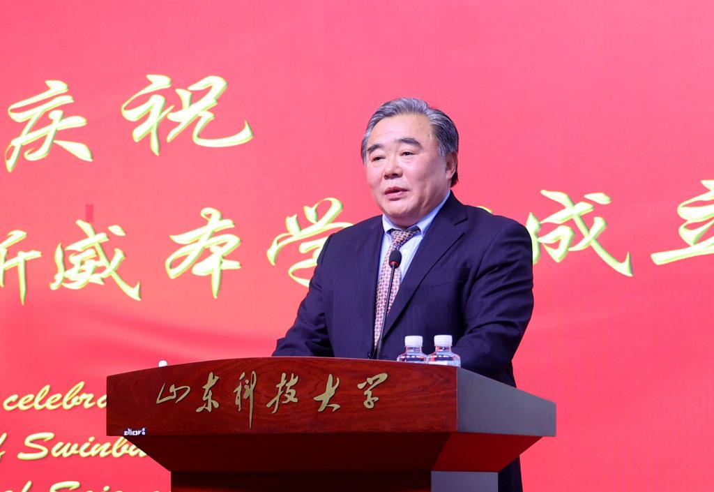 刘欣堂在致辞中向斯威本学院的正式成立表示祝贺。他对斯威本学院建设提出三点要求,一是要树牢社会主义办学方向,坚持党的领导,贯彻党的教育方针,坚持面向经济社会发展需要,遵循教育发展人才成长规律,深化教学改革,提高办学水平和人才培养质量,面向世界,面向未来,面向现代化,努力培养更多更好的国内外经济社会发展需要的高水平高层次人才;二是要坚持高标准高起点建设,坚持以我为主、为我所用的原则,做好优质教育资源的引进、消化、吸收和融合创新,在高质量、优结构、可持续中探索教育对外开放的新路子;三是要积极服务于山东现代化强省建设,充分发挥地处省会贯通青岛的地理优势,进一步凝练学科特色,创新人才培养模式,提升办学质量和水平,服务高等教育改革发展,为全面开创新时代现代化强省建设新局面贡献山科大的力量。