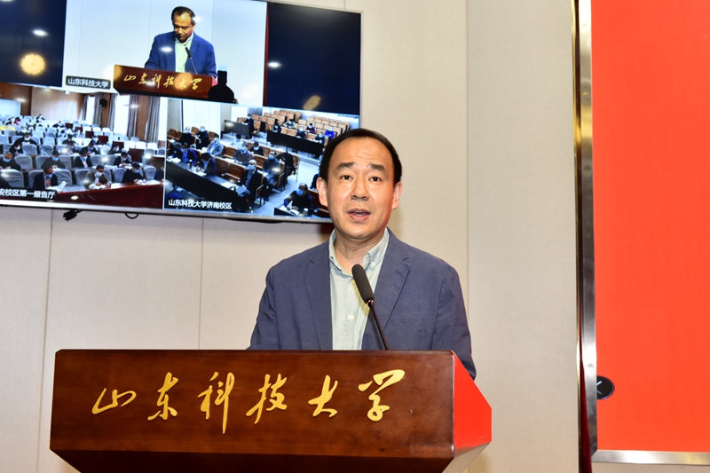 会议为三地视频会议。青岛校区设主会场,泰安、济南校区设视频分会场。