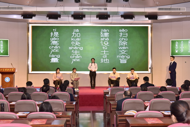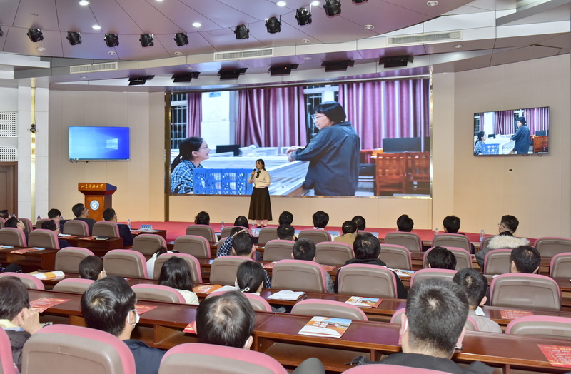 在主题宣讲会上,“初心使命”研究生宣讲团以“教育强国,强国有我”为主题,为师生代表呈现了一场精彩生动的宣讲课。宣讲紧扣科教兴国战略、人才强国战略、创新驱动发展战略,围绕“春风化雨 其乐未央”“北斗精神耀星空,青年壮志正当时”“生命不息,奋斗不止”“苦中作乐,梦里花开”四个篇章,通过故事讲述、情景再现、舞台剧等多种形式,立体式全景化展示青年学生爱党爱国情怀。宣讲中,一个个顽强拼搏、不懈奋斗、忘我奉献的感人故事透射出的坚韧不拔的意志品质和深厚的爱国情怀,深深触动了在场的每一个人,动情的宣讲让师生不知不觉中热泪盈眶。