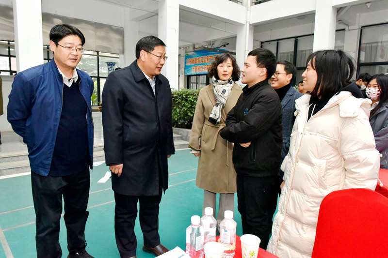 校党委常委、副校长诸葛福民深入招聘现场了解毕业生就业工作,了解人才招聘需求和对学校人才培养的反馈和建议,并毕业生亲切交流,勉励他们客观分析自身情况,树立正确就业观与择业观,充分展现个人优势,珍惜把握就业机会。