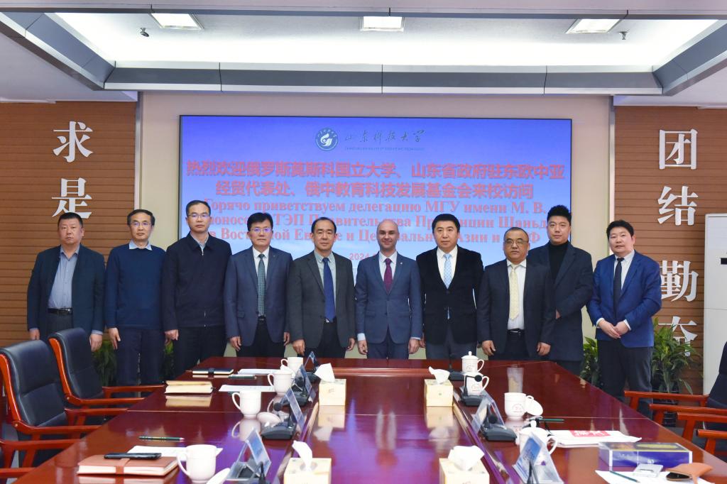 曾庆田介绍了学校2023年下半年开展的作为山东省首批试点高校,完成教育部新一轮本科教育教学审核评估等四项关键性工作。他指出,下一步将积极推进中俄高层次创新园区建设,在两校优势学科、基础学科、新兴学科等领域开展高层次人才联合培养,在古生物学、计算机科学等领域开展师生交流、教育科研合作、共建合作平台等方面深化与莫斯科国立大学的务实合作。