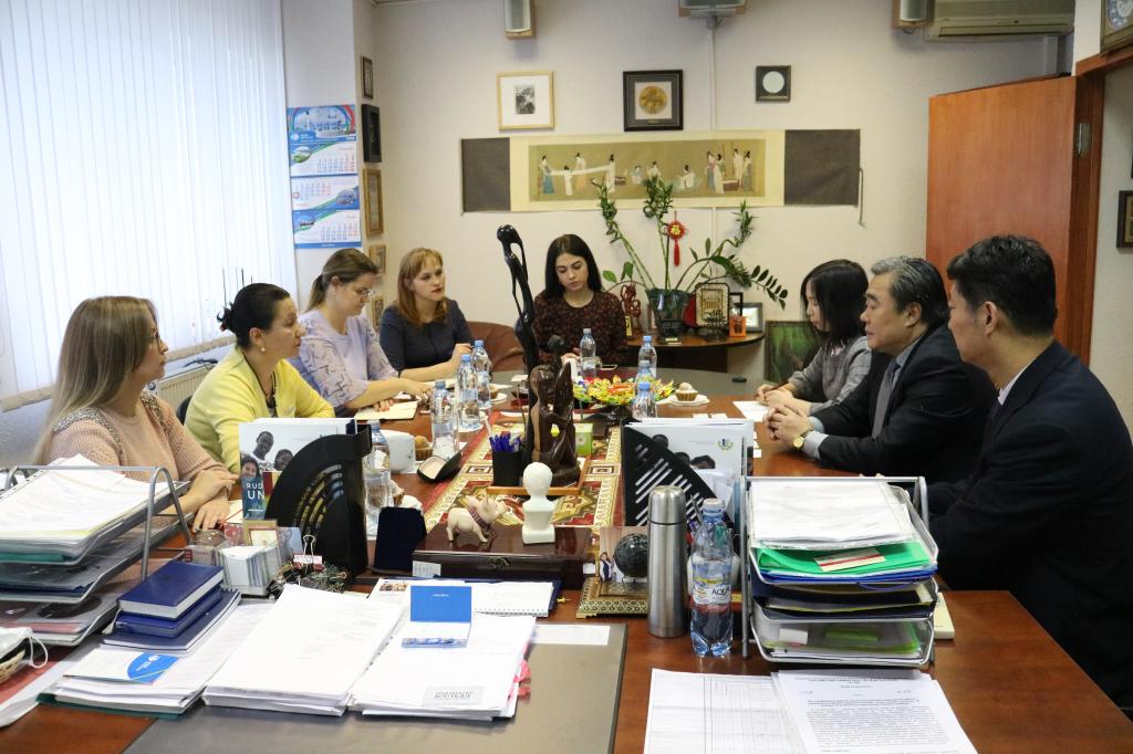 在俄罗斯联合金融工业大学,第一副校长Artem Vasiliev等热情欢迎访问团一行。双方围绕《“一带一路”人力资源培养基地中俄联合办学协议》,就结合相关专业开展“2+2”双学位联合办学等开展了详细的磋商。