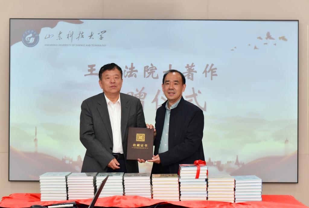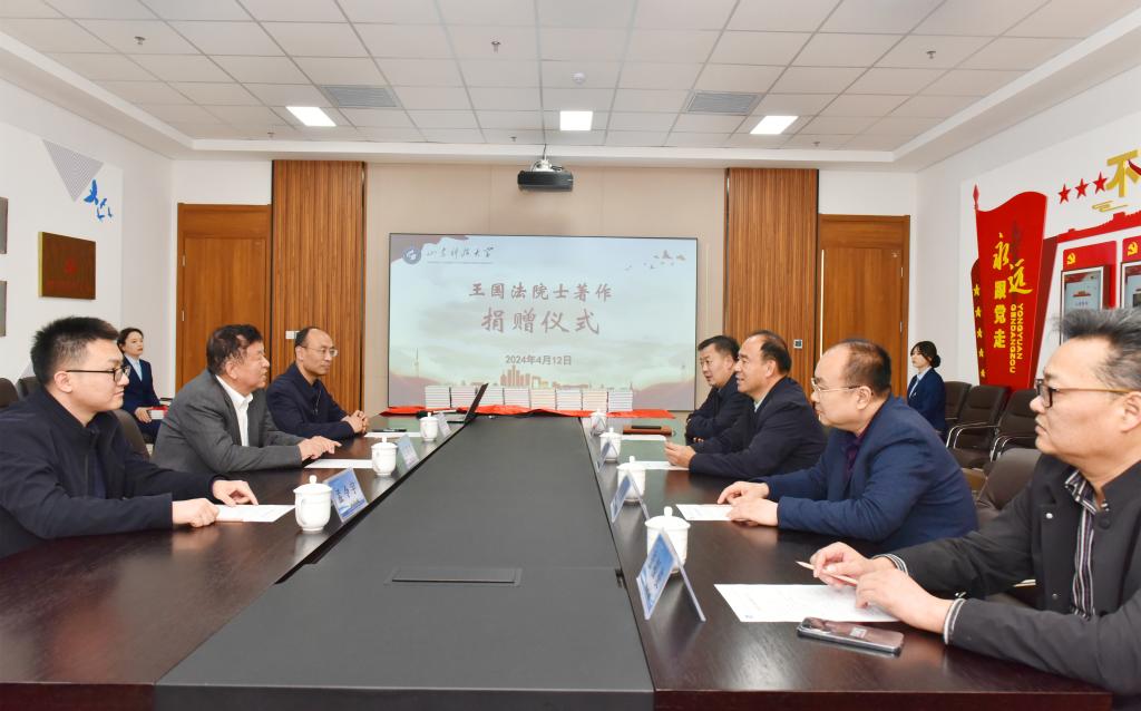曾庆田感谢王国法院士一直以来对学校学科建设、平台建设、人才培养等方面的关心和支持,表示此次受赠的科普图书是培养学生成才的重要资源,有助于学生进一步了解煤炭行业及学校传统学科,希望王国法院士在科学研究、学科建设、人才培养等方面与学校进一步加强沟通交流,支持学校发展建设。