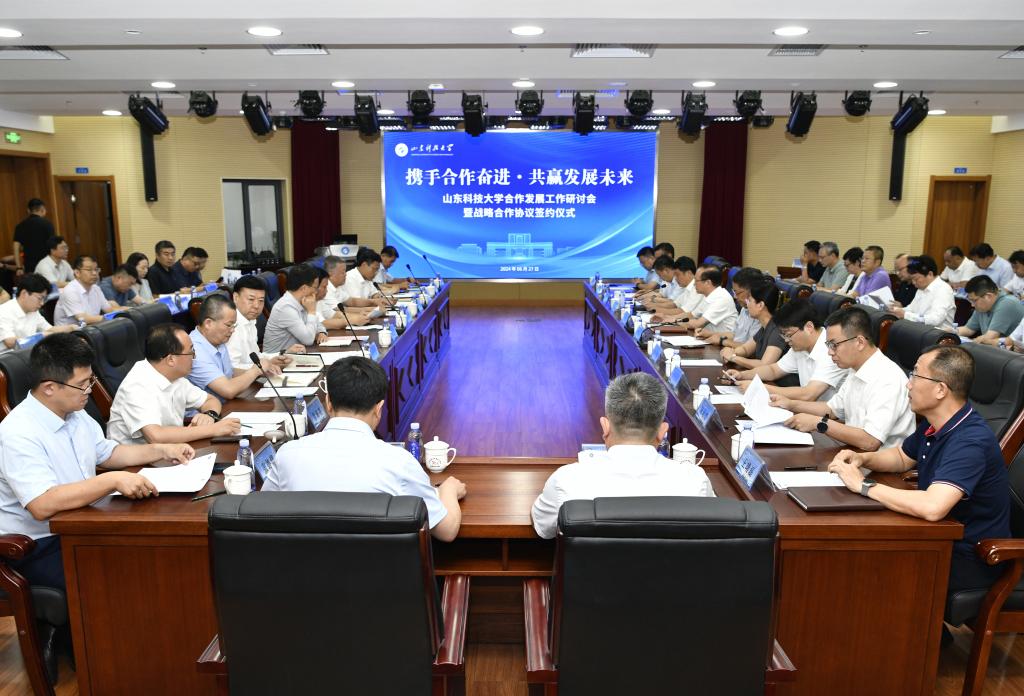 中国安全生产科学研究院、山东产业技术研究院、山东能源集团、莱州市人民政府、龙口市人民政府、中国石油大学(华东)、山东理工大学、中科院兰化所、中国科学院青能所、自然资源部海洋一所、青岛明月海藻集团、青岛市轨道交通、金能化学、华夏天信、芯恩(青岛)、以萨技术、海湾化学、豪迈集团等合作单位相关领导,学校三校区相关职能部门主要负责人、学院党政主要负责同志参加了会议。(供稿:合作发展处 摄影:许浩 责编:徐展)
