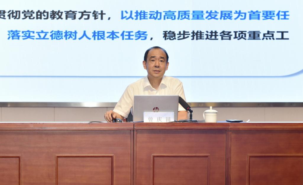 曾庆田对2024年上半年工作及“十四五”事业发展规划实施情况进行总结,对下半年主要工作进行安排部署。曾庆田表示,上半年,学校坚持和加强党对学校工作的全面领导,全面贯彻党的教育方针,以推动高质量发展为首要任务,以改革创新为根本动力,落实立德树人根本任务,稳步推进各项重点工作落实见效。曾庆田分析了目前学校发展存在的问题和不足,对下一步重点任务全面解读分析,从“坚持和加强党对学校工作的全面领导”“全面深化改革,增强发展活力”“突出强基筑峰,推进‘双高'建设”“潜心立德树人,提高人才培养质量”“坚持精准施策,建设高水平人才队伍”“强化科研创新,提升社会服务效能”“持续扩大开放,提高国际化办学水平”“强化条件保障,建设文明和谐校园”八个方面对下半年工作进行部署。