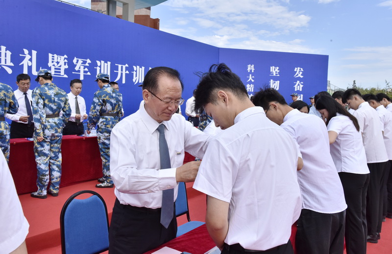 典礼上,教师代表、教官代表、学生代表分别发言,表示将精心施教、科学安全施训、勤奋用功学习,在青岛校区,本科生新生代表和研究生新生代表通过朗诵表达了为学校争光添彩、为祖国多做贡献的决心和信心。典礼同步举行了佩戴校徽及宣誓仪式,与会领导为新生代表佩戴校徽,全体新生面对国旗进行宣誓,立下了“爱党爱国,牢记使命;爱校荣校,勤学笃行;惟真求新,敢于担当;坚韧不拔,发奋图强;不忘初心,勇做新时代追梦人”的铮铮誓言。