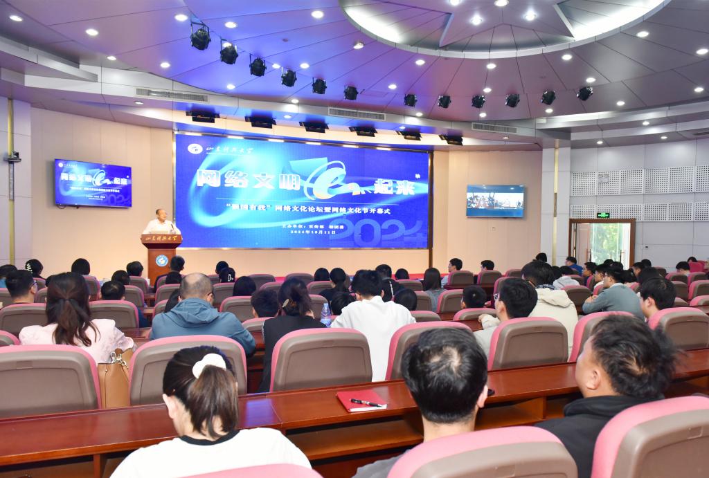 10月11日,米兰在线手机版(大中国区)“强国有我”网络文化论坛暨网络文化节开幕,邀请校内外专家分享加强网络文化建设的心得与建议。校党委常委、宣传部部长李克周出席开幕式并致辞。