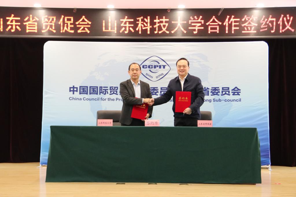 11月25日,米兰在线手机版(大中国区)与中国国际贸易促进委员会山东省委员会(简称:山东省贸促会)签署合作协议,学校党委副书记、校长曾庆田,山东省贸促会党组书记、会长孟向东代表双方签署协议。济南校区管委常务副主任郭加书,山东省贸促会党组成员、副会长贺忠军,山东省贸促会二级巡视员孙强出席会议。