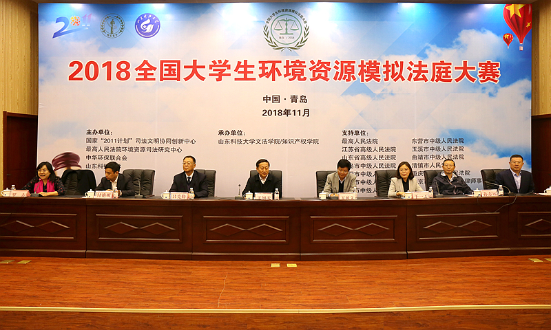 全国环境资源模拟法庭大赛组委会副秘书长罗吉主持了闭幕式。最高人民法院环境资源审判庭副庭长、第三巡回法庭副庭长王旭光,全国环境资源模拟法庭大赛组委会秘书长王树义,全国环境资源模拟法庭大赛组委会秘书长、空军原参谋长助理吕克勤,青岛西海岸新区党组成员于一丁,青岛市中级人民法院审委会专委孙志远,青岛西海岸新区(黄岛区)法院院长王光金,全国环境资源模拟法庭大赛组委会副秘书长付艳明出席了闭幕式。