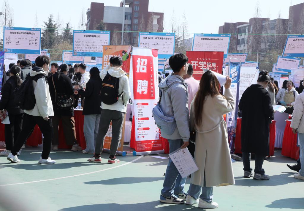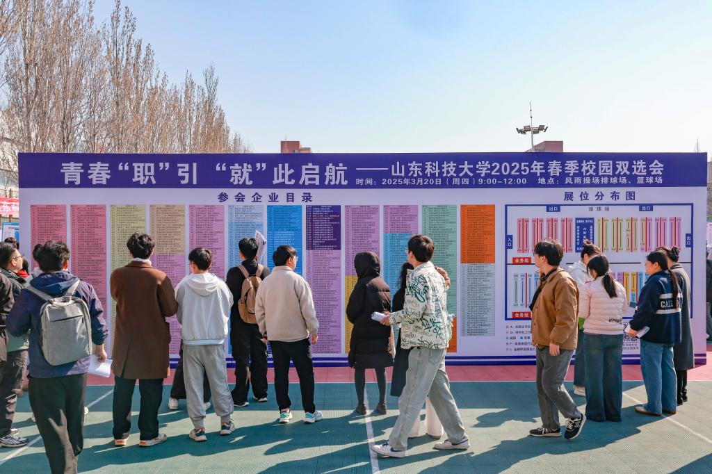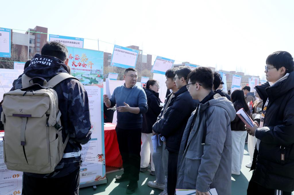 “国企引领、校友助力、区域联动”是本次双选会的鲜明特色。会前,学校以服务国家战略为主线,聚焦山东省“十强产业”,精心接洽相关单位,主动向各地人社问需,优化就业服务链条,“朋友圈”不断稳固扩容。三峡集团、济宁能源、中铁集团、中冶集团、中国重汽、河南能源等110家大型央国企强势入驻,北京安科兴业科技股份有限公司、山东鼎安检测技术有限公司、尤洛卡股份有限公司等校友企业前来支持。青岛、淄博、东营、菏泽、日照等10地市也纷纷“组团”前来,吸引毕业生投身当地经济社会发展。双选会期间,淄博市引才专员“牵线搭桥”,发动30家淄博企业组团前来揽才。此外,双方还组织开展政校企交流座谈,围绕校地合作、学生就业、科技成果转化等展开深度对接。