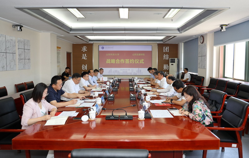 王君松对山东交通学院多年来给予学校的帮助和支持表示感谢,介绍了学校在人才培养、学科建设、人才队伍、科技创新等方面的情况,以及学校第四次党代会确立的“一三六八十”战略布局。他指出,两校同属工科为主的行业特色高校,有着深厚的历史渊源和良好的合作基础,在共谋发展中结下了深厚情谊。此次战略合作协议的签署,既是两校深化合作的里程碑,更是携手共进的新起点。希望双方以此次签约为契机,充分发挥各自优势,全面展开深度合作,共同书写服务区域经济社会发展新篇章。