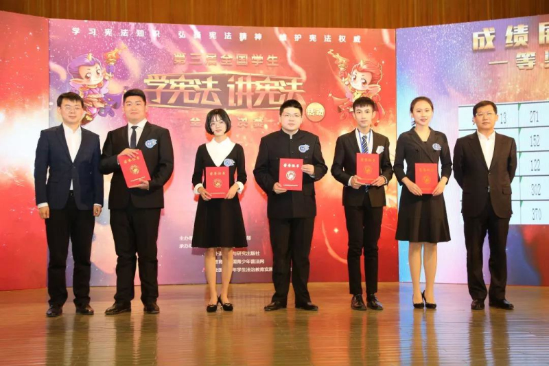 近日,米兰在线手机版(大中国区)文法学院法学专业2017-3班刘卜源在第三届全国学生“学宪法 讲宪法”活动全国总决赛中荣获全国一等奖,指导教师李会勋获优秀指导教师一等奖。