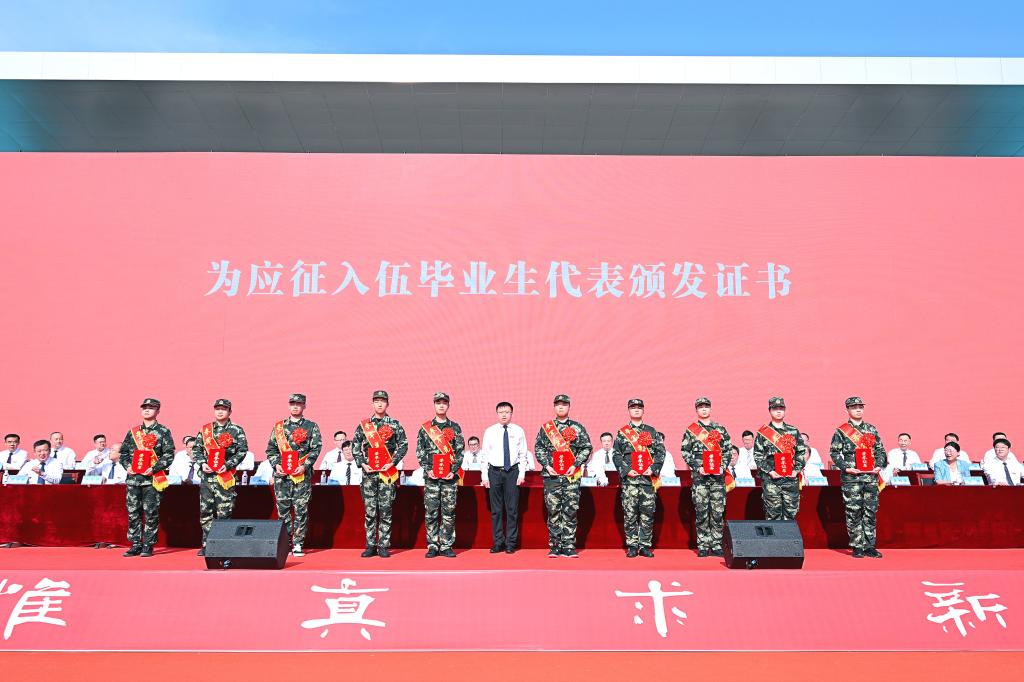 典礼在庄严的国歌声中拉开帷幕。副校长阳凡林宣读优秀毕业生、西部计划志愿者、应征入伍毕业生、校友信息联络员和“我最难忘的恩师” 名单。与会领导及嘉宾分别为优秀毕业生及西部计划志愿者代表颁发证书、为应征入伍毕业生代表佩戴红花、为校友信息联络员代表颁发聘书、为“我最难忘的恩师”代表颁发证书。其中,56 名毕业生响应国家号召应征入伍,校党委书记王君松为应征入伍毕业生代表颁发证书,现场掌声经久不息。