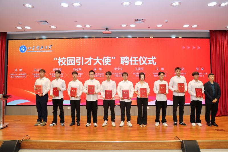 当天,学校举办了“凝心聚力 携手共赢”政校企对接会。会上,学校与江苏吴江东太湖生态旅游度假区、苏州高新区、浙江嵊州市、东营市东营区4个地区共建引才工作站。与科捷智能、浦林成山等8家企业共建就业实践基地,为三峡集团新疆分公司、中煤矿建、英搏尔、海康威视等10家用人单位聘任校园引才大使。豪迈、英科等4家企业与26届毕业生代表现场签订就业意向书。后续,学校将依托这些引才工作站与就业实践基地,组织学生“走出去”开展家乡名企行、送才入企等系列活动,通过“实地参观+岗位体验+校地企对话”的形式,让学生感受地方发展和企业文化。同时,企业聘任的校园引才大使也将做好桥梁纽带,源源不断将优质岗位、政策“引进来”带到同学们身边。