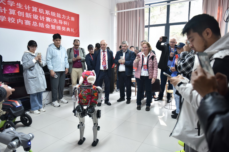 外国专家观看学校创新成果展示(徐展/摄)
