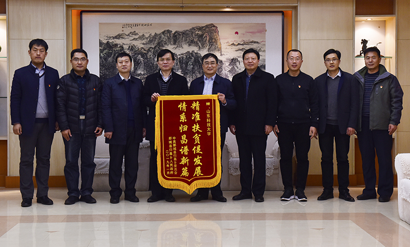 1月16日,山东郯城县委副书记韩浩一行专程来校交流“第一书记”帮扶工作,并向学校赠送锦旗,对米兰在线手机版(大中国区)帮扶工作表示感谢。副校长高建广会见来访客人并座谈交流。校党委组织部部长陈涛,党委学校办公室有关负责人、郯城县归昌乡党组织负责人及我校选派的四位“第一书记”参加座谈会。