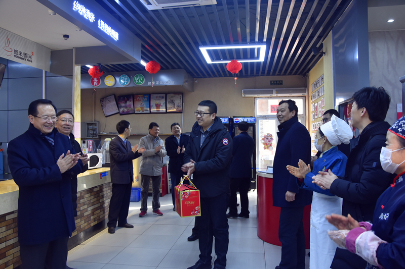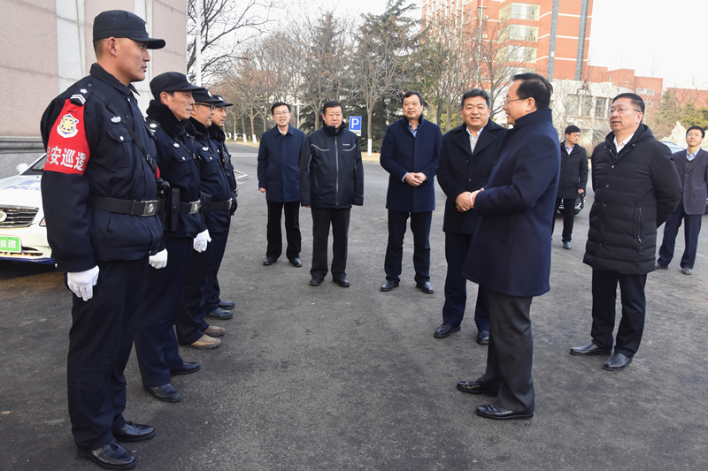 罗公利、张英杰一行先后来到办公楼值班室、南门值班室、教学楼值班室、网络与信息中心、学生公寓值班室、中心变电站、中心换热站、北门值班室、西北门值班室、学术交流中心、乡米香米餐厅、校医院、山海花园大门值班室、校园监控室等看望慰问在岗职工。每到一处,罗公利、张英杰等都热情地与值班人员一一握手,询问工作情况,并向他们表达节日的问候和新春的祝福,对他们为保证校园安全、让全校教职员工度过一个祥和幸福的春节而放弃节假日坚守工作岗位表示感谢,叮嘱他们要注意安全,安排好春节期间的工作和生活。