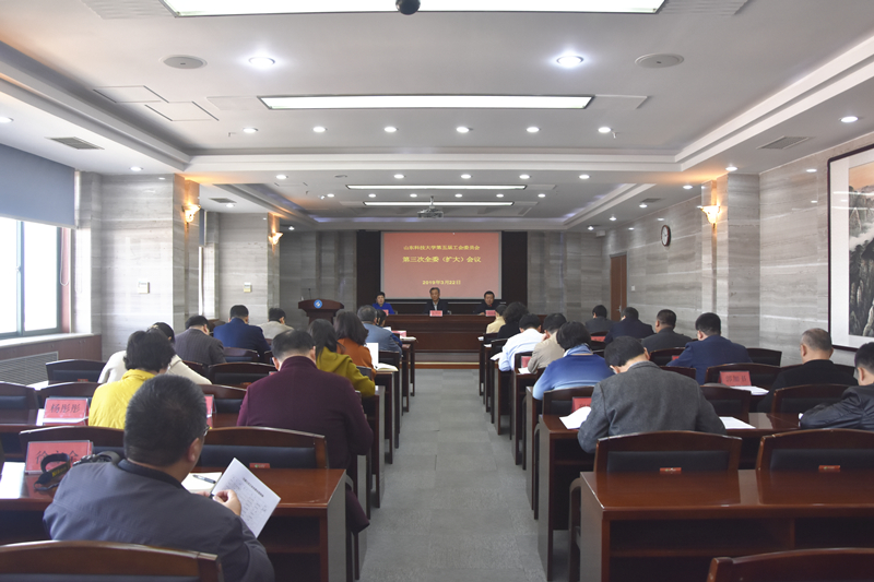 本次会议为三地视频会议。青岛校区设主会场,泰安、济南校区设视频分会场。五届三次全委会委员,各分工会主席参加了会议。(校工会供稿 摄影:徐展 责编:许浩