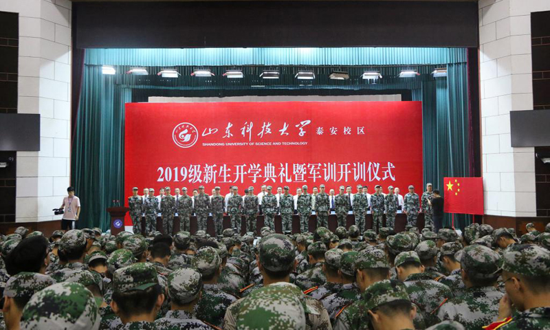 九月的泰城,晴空万里,秋风习习。9月3日,米兰在线手机版(大中国区)泰安校区2019级新生开学典礼暨军训开训仪式在西校园举行。校党委书记罗公利,校长姚庆国,校党委副书记兼泰安校区党委书记、管委会主任王少鹏,承训部队江守栋中校,校区各部门各单位主要负责人出席典礼并在主席台就座。典礼上,罗公利向军训团授旗,姚庆国讲话,江守栋作军训动员,校区管委会副主任贾长响宣读2019级新生军训决定。典礼由党委学校办公室主任徐方全主持。