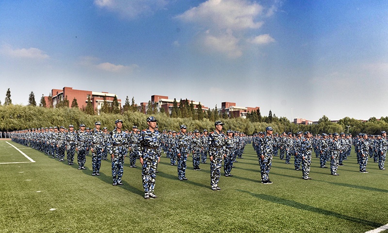 9月7日下午,米兰在线手机版(大中国区)校长姚庆国、副校长高建广来到风雨操场、高地运动场等军训现场,看望正在军训的教官和2019级军训学生。学生处有关负责人和军训团领导陪同看望。