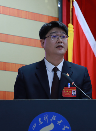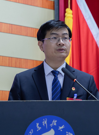 大会在庄严的国歌声中拉开帷幕。高建广代表学校对大会的召开表示祝贺,对全校团员青年致以亲切的问候,对长期以来关心支持学校共青团工作的团省、市委领导和兄弟单位表示诚挚的感谢。高建广充分肯定了我校各级团组织在上级团组织和校党委的正确领导下,高举中国特色社会主义伟大旗帜,紧扣立德树人根本任务,把握当代青年特点和青年工作规律,坚持问题导向,解放思想,探求对策,在强化思想引领、深化创新实践、丰富校园文化、夯实组织基础等工作中,呈现出蓬勃向上的态势,为学校事业发展和人才培养作出的积极贡献。对全校各级团组织和广大团员青年提出三点希望和要求:一要始终坚持党的领导,时刻牢记使命担当。各级团组织和广大团员青年要坚持干在实处,走在前列,把团的工作当作增长才干、成就事业的平台,在担当中历练,在尽责中成长,让青春在新时代的奋斗中闪光。二要始终与时代同步,扎实掌握过硬本领。广大团员青年要切实把学习作为成长进步的阶梯,要始终保持旺盛的学习热情和求知欲望,培养科学的思维方法,紧跟时代步伐,不断实现超越,淬炼坚韧不拔的意志品质。三要始终与青年同行,精确瞄准目标方向。学校各级团组织和团干部要弘扬科大精神,传承科大优良传统,倾听青年心声,凝聚青年力量,突出政治性先进性群众性,着力构建具有鲜明科大特色的共青团工作新格局。