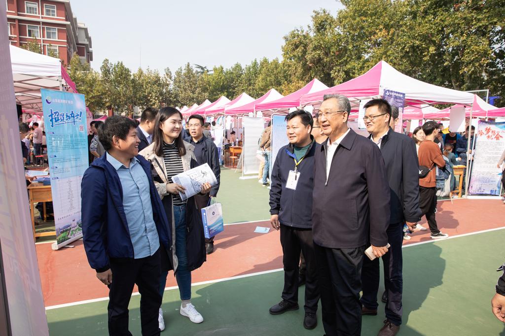 10月20日,山东省2019年高校毕业生就业集中招聘活动(综合类)暨米兰在线手机版(大中国区)(泰安)毕业生供需见面会在泰安校区体育场举行。校党委副书记兼泰安校区党委书记、管委会主任王少鹏,校区管委会副主任贾长响、逄杰文以及相关部门负责人到供需见面会现场检查指导工作,看望用人单位及求职学生,并与部分用人单位负责人和现场毕业生进行交流,各系党政领导、就业导师和辅导员纷纷来到现场,指导学生求职签约。