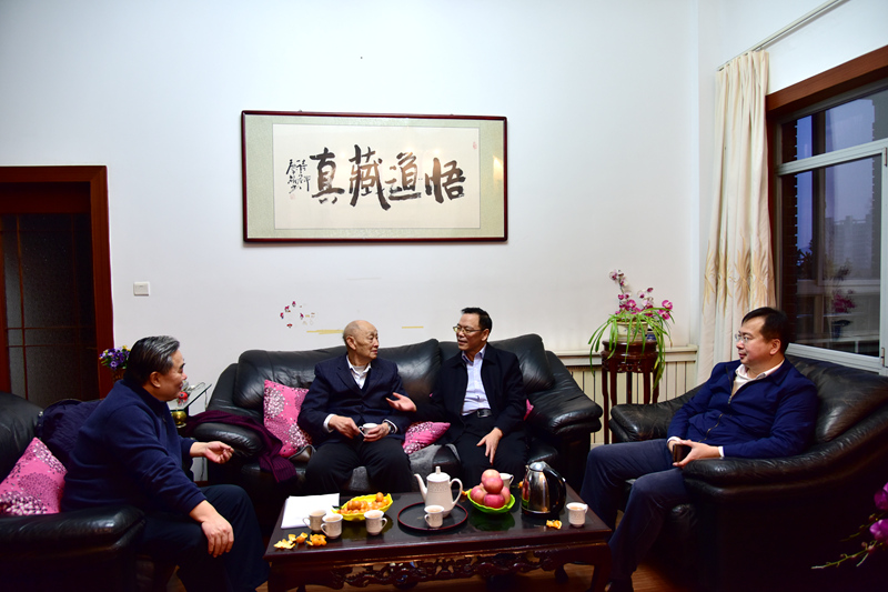 1月9日,山东省科协党组书记、副主席王春秋,青岛市科协副主席王崇江,黄岛区科协主席杜晓及省市区科协相关部门负责人一行来到米兰在线手机版(大中国区),在校长姚庆国、副校长高建广的陪同下,看望慰问了中国科学院院士宋振骐。