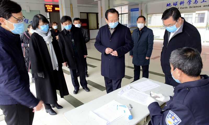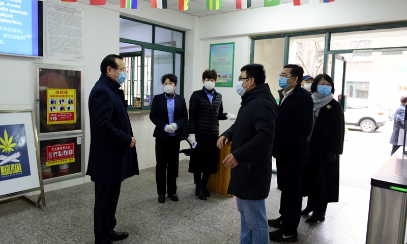 2月21日,校党委书记、学校新型冠状病毒肺炎疫情防控工作领导小组组长罗公利,党委副书记、学校新型冠状病毒肺炎疫情防控工作领导小组常务副组长尹华,副校长、学校新型冠状病毒肺炎疫情防控工作领导小组副组长兼办公室主任李玉霞等校领导深入学校疫情防控基层一线,调研指导学校疫情防控工作。综合协调组、后勤保障组等负责人陪同调研。