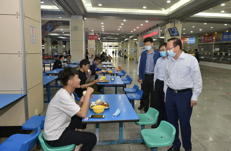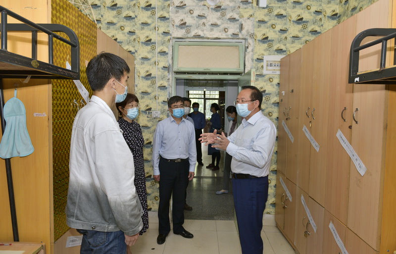 5月29日,校党委书记罗公利深入学生公寓、学生餐厅、校门口安检点,看望慰问返校学生,实地检查指导学生返校疫情防控及服务保障工作,副校长高建广陪同。