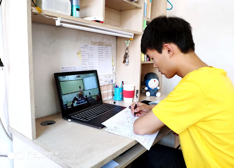 未返校学生在家中观看直播课程
