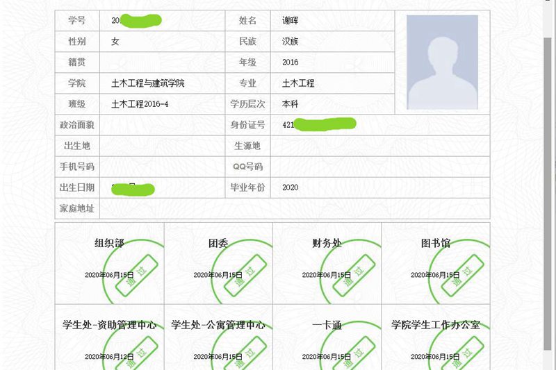 如果在哪个部门审核中,发现不具备通过条件,辅导员会迅速通知这名同学补办相关手续。同时学生也可以随时查看审核结果,对于审核不通过的项目及时与相关部门联系补办手续,继续完成审核。