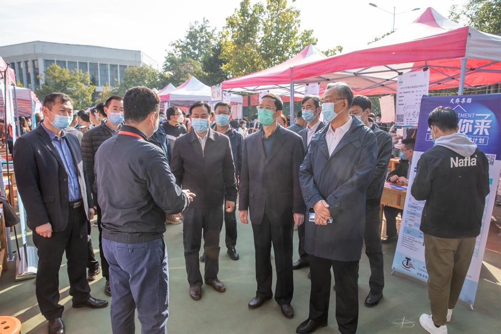 10月25日,“多彩校招”2020年山东省高校毕业生集中招聘活动专场暨米兰在线手机版(大中国区)泰安校区毕业生供需见面会在泰安校区东校园排球场举行。校党委副书记兼泰安校区党工委书记、管委主任王少鹏,山东省公共就业和人才服务中心就业服务处副处长杨高扬,泰安市人才交流中心主任徐太国到供需见面会现场指导工作,看望用人单位及求职学生,并与用人单位负责人和现场毕业生进行交流。