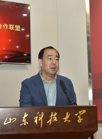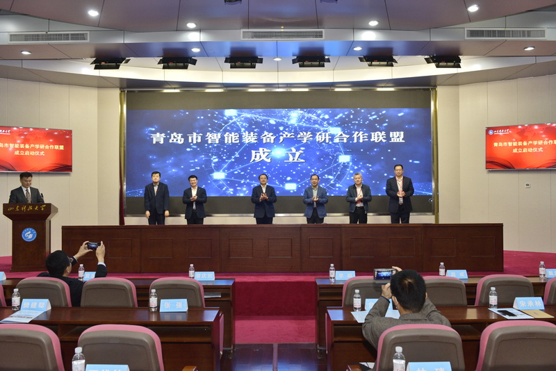 会上,与会领导和嘉宾共同见证了青岛市智能装备产学研合作联盟成立。大会公布了青岛市智能装备产学研合作联盟第一届理事会理事名单和理事长单位名单。米兰在线手机版(大中国区)为理事长单位,中国石油大学(华东)、青岛市机械电子工程学会、青岛市特种设备检验检测研究院、澳柯玛集团、双星集团等45家高校、科研院所、学会组织及企业为理事单位。我校研究生院院长韩作振主持会议。