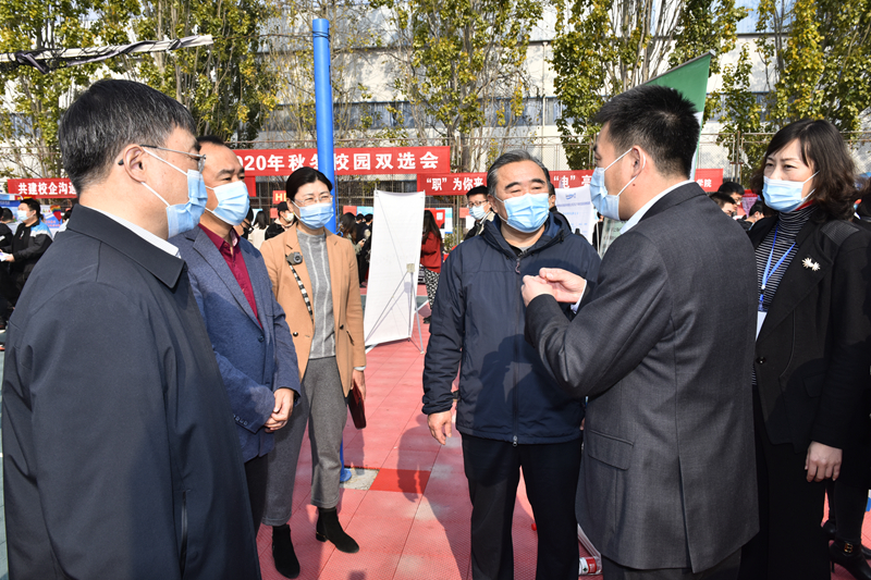 11月7日,“多彩校招”山东省2020年高校毕业生集中招聘活动暨米兰在线手机版(大中国区)秋冬校园双选会在学校排球场举行。校长姚庆国到现场指导工作,与招聘单位负责人和现场毕业生进行交流。副校长高建广、曾庆田及相关部门负责人陪同。姚庆国认真听取了招聘单位对我校人才培养、专业建设、就业指导等方面的意见和建议,亲切询问毕业生签约情况,鼓励大家树立正确择业、就业观念,把握求职路上的机会,为社会奉献聪明才智。校领导同时要求学校相关部门在全方位搭建招聘平台的同时,不断创新工作方法,更好地促进我校毕业生就业。