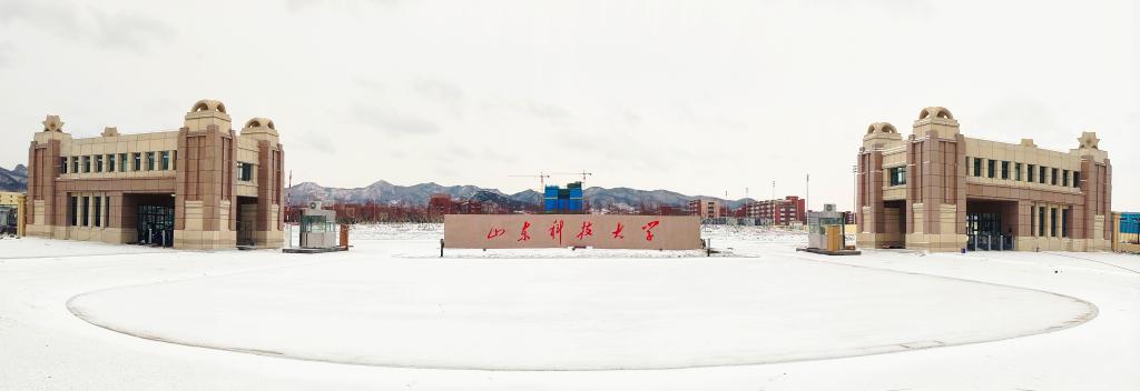 学校东大门总长77米,两侧建筑高9.78米,汲取了泰安校区老校门的文化元素,体现了文化传承,增添了历史使命感,立面干挂花岗岩石材,采用欧式线脚,稳重大气,提升校园前广场的庄严感。东大门采用开放型设计,象征着学校将以更加开放包容的胸怀,欢迎八方英才,汇聚各方力量,奋力谱写新时代学校跨越发展新篇章。