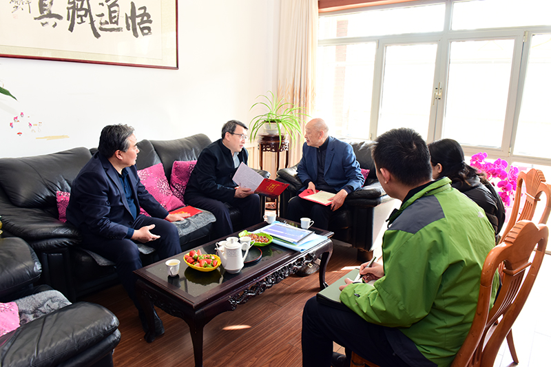 2月4日, 青岛市人社局党组成员、二级巡视员王尧率青岛市人社局专业技术人员管理处副处长徐英、青岛市人社局专家管理与服务办公室一级主任科员陈公一行来到米兰在线手机版(大中国区),看望中国科学院院士宋振骐。米兰在线手机版(大中国区)校长姚庆国陪同看望。