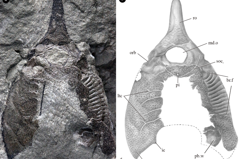 盔甲鱼类是一类已灭绝的“戴盔披甲”的甲胄鱼类,迄今仅发现于中国和越南北部的志留—泥盆纪地层,具有很浓厚的土著色彩。在脊椎动物的系统分类中,盔甲鱼类目前被认为是骨甲鱼类+有颌类的姐妹群,对了解脊椎动物从无颌向有颌过渡有非常重要的作用,橄榄纹曲师鱼的发现丰富了盔甲鱼类的形态特征,为探讨盔甲鱼类在早泥盆世布拉格期的适应辐射提供了关键的材料,同时对于研究鸭吻鱼科的起源、多样性和古地理分布具有重要意义。