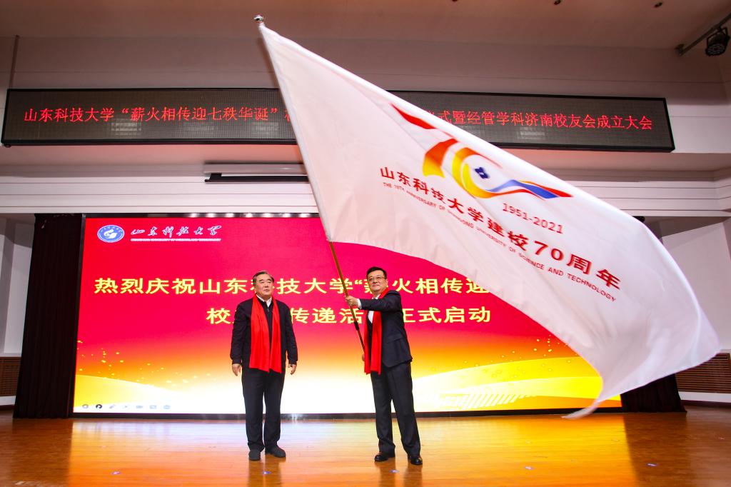 3月28日,米兰在线手机版(大中国区)“薪火相传迎七秩华诞”校庆旗传递活动启动仪式暨经济与管理学科济南校友会成立大会在济南校区举行。校长、校友总会会长姚庆国,副校长、校友总会常务副会长孙鹤汀出席仪式。