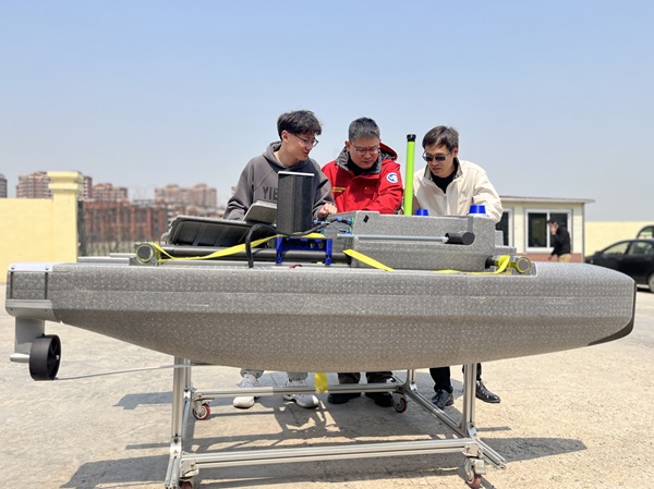 杨继超介绍,目前,学校无人船技术处于国内并跑的阶段。国内几家无人船研发院校、机构各具特色。有的无人船船体较大,主要用于岛礁和近海浅水域等水下地形、地貌探测;有的船体普遍较小,用于海洋测绘稳定性较差,更适合内陆湖泊、河流的测量。“嵙海”系列无人船采用双体结构,船长4米,在极地海洋中有着独特的优越性。