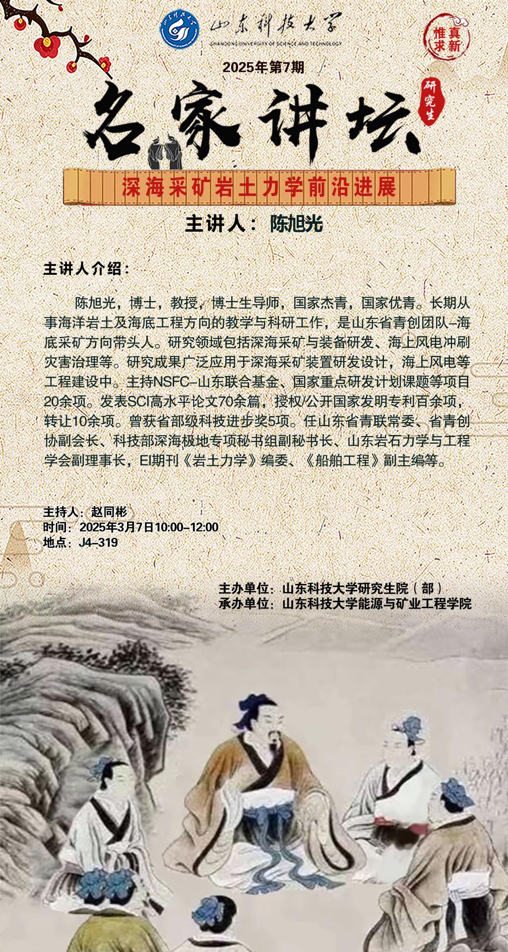 “名家讲坛”2025年第7期:深海采矿岩土力学前沿进展(总1012期)