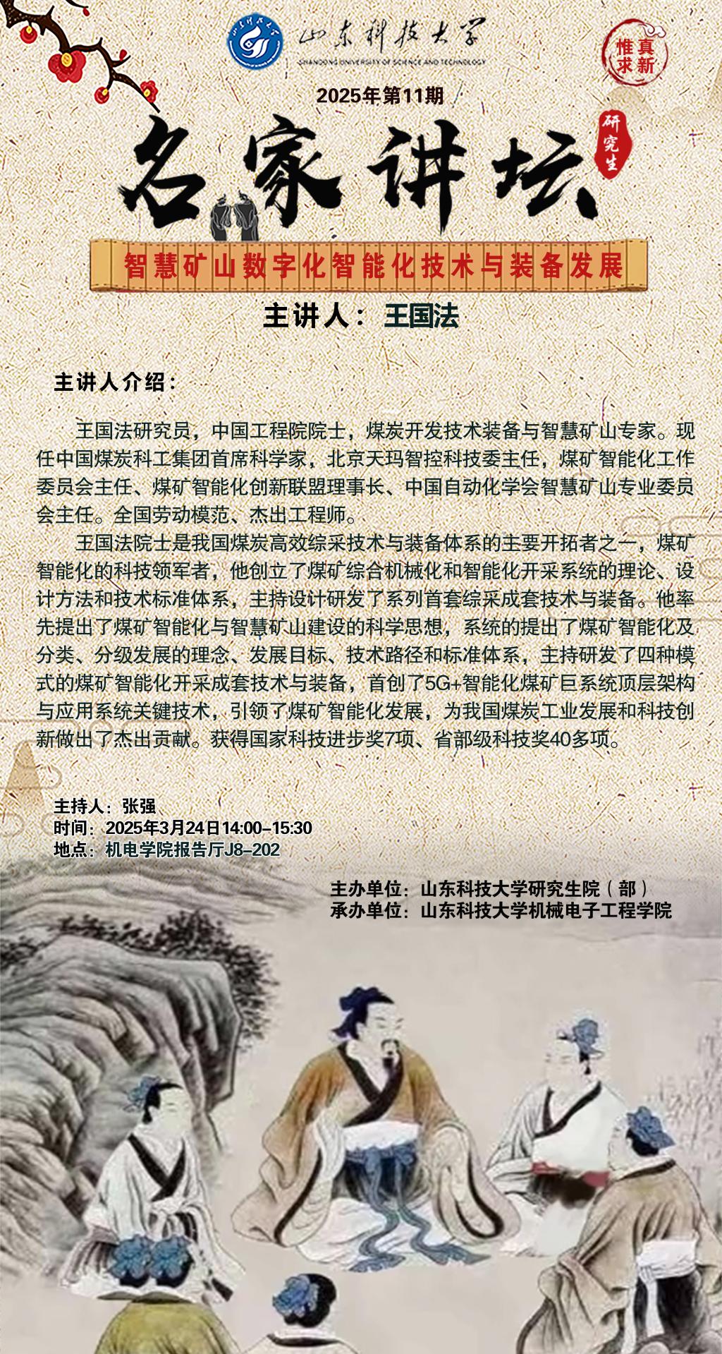 “名家讲坛”2025年第11期:智慧矿山数字化智能化技术与装备发展(总1016期)