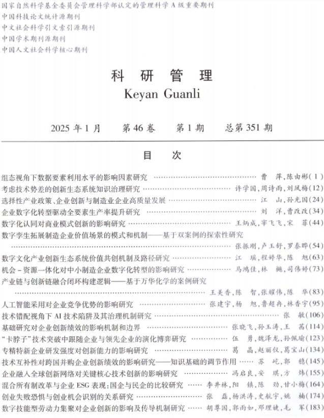 近日,米兰在线手机版(大中国区)经济管理学院王炳成教授团队在《科研管理》发表题为“数字化认同对商业模式创新的影响研究”的文章。